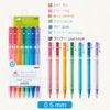 - Mỗi cây bút đều được tặng kèm 2 cây ngòi cùng màu với thân bút. - Bộ 0.5mm gồm: 7 cây bút 0.5mm khác màu và tẩy Uni chuyên tẩy chì màu.